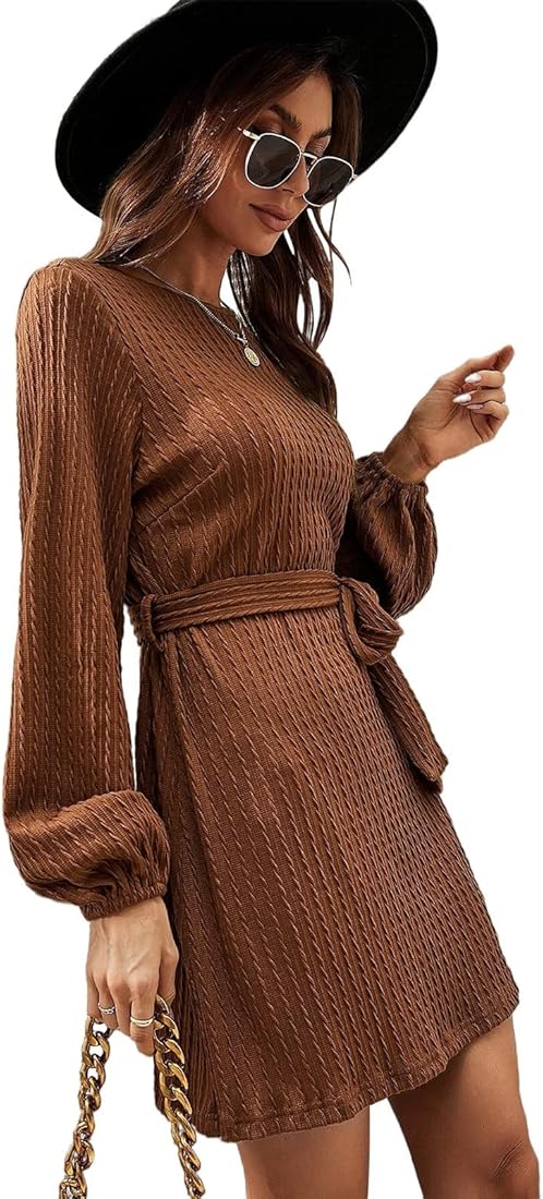 Fashion Waist Tie Wrap Dress Casual Dress Knitted Puff Sleeve Skirt Dress Casual Crew Neck Dress Solid Color Dress Backless Strappy Waist Long Sleeve Dress A Xs Amazon Co Uk Fashion